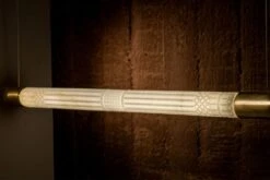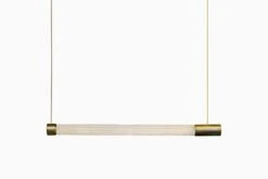 - The suspended marble tubes are available in both smooth and carved finishes, with added customisable detailing.