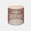 A modern design with a vintage feel, this coffee table is made of tanned crunch leather and natural polished wood with multiple front drawers for storage.