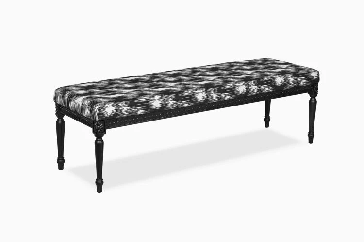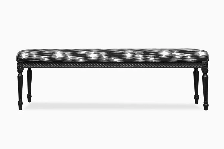 The beautiful lines and sculptural legs of Camille add a touch of sophistication to your dining or living room. The dreamy Parisian apartment style bench is constructed from ash wood with a printed upholstered seat.