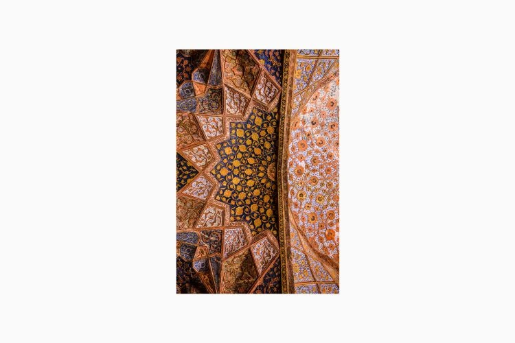 Intricate ceiling at the exquisite tomb of Akbar, in Agra, India.