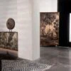An inspired addition to the bedroom, Amal is functional art. Hand-cut and individually formed, bone inlays are arranged in a transfixing pattern in hues of grey and white. Boasting storage with three convenient drawers, this table is carefully handcrafted from solid wood and resin components.