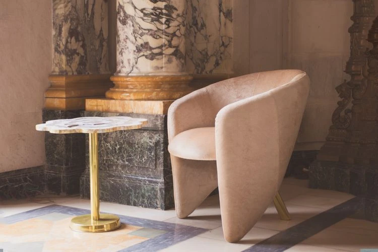 Upholstered with Velvet Fabric, Metal Leg with Brass finish