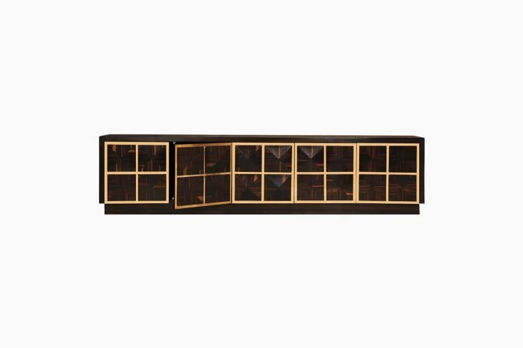 Designed with style, environment, and function in mind, this buffet has been crafted with veneer, suede lining, and cast brass hardware.
