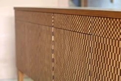 Designed with beautiful clean lines, sleek legs and lots of storage this compact sideboard is ideal for storing away bits and pieces, with an eye-catching chequered design.