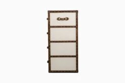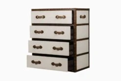 Storing numerous items discretely is a breeze thanks to the four spacious drawers built into this lovely chest. With the beautiful concoction of cotton canvas and vintage genuine leather trims, the modern yet vintage design of the chest makes it ideal for use next to a bed or at a corner of your living space.