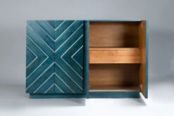 A must-have item for the indulgent abode, Claude offers a cosmopolitan feel with a sleek form and glorious brass inlay details in a geometric pattern.