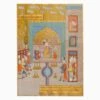 This re-created pichwai depicting Krishna’s favourite – the Kamadhenu cows features the figurines in contemporary detail as they await in anticipation of the full moon on Sharad Purnima. The tiny hand marks on the cows and the peacock feathers on their heads are painted with natural stone pigment in intricate detail.
