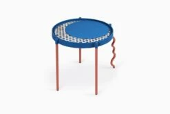 Lightweight yet sturdy these metal tables flaunt a fun playful curvy leg each that goes on to gently hug its partner into a warm embrace.