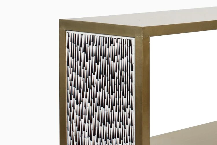 Eren features a masterful combination of abstract textures and neat lines. With fine details and enthralling bone inlay work, it makes a great fit for any contemporary setting.