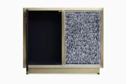 High-energy inlay patterns mix with the boisterous beauty of cladded brass to form a unique storage cabinet fit for luxe interiors. A convenient space to house your aperitifs, bar essentials, and dining accessories.