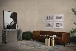 Our take on the classic Chesterfield design, Garrett brings the generous charm and polished romance of old English gentlemen’s clubs to your living rooms. Finished with tufted back, high rolled arms, and a charming hue, this sofa makes the perfect addition to luxe decor.