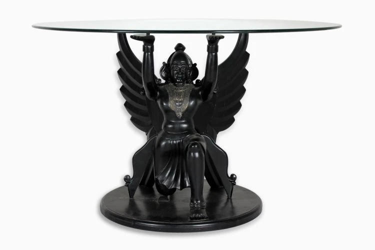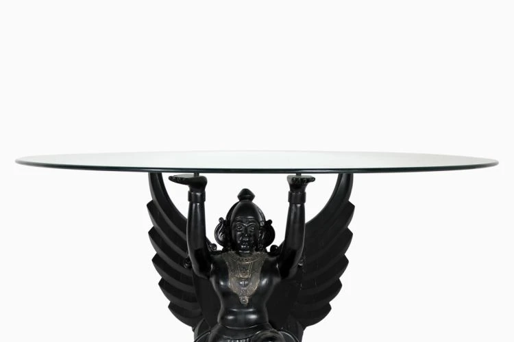 Taking it’s cue from mythology, the Garuda accent table is an unique accent piece and perfect for making a statement in your home. Almost poetic, it is a great conversation starter. Featuring a lipped rim, the mirrored glass tabletop provides an elegant platform for everything from vases to books.