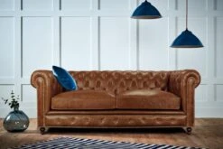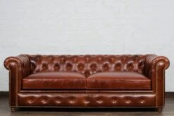 19th century Chesterfield design with buttoned back and stubbed detailing creates a luxurious look with the Gentleman’s Club Chesterfield Sofa. Handcrafted in vintage-finish genuine leather, this sofa with wooden bun legs and brass nails makes a picture-perfect traditional classic.