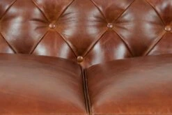 Genuine Leather, Kiln dried hardwood, Meranti solid frame, Fine teak legs, High density PU foam, Polyfibre, Antique brass nails