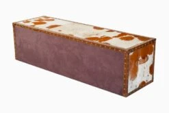 Genuine Hairon Leather, Fine wood base, Suede fabric & Antique hardware