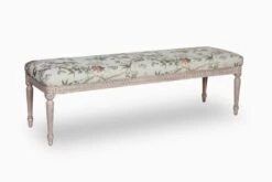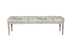 The beautiful lines and sculptural legs of Harika add a touch of sophistication to your dining or living room. The dreamy Parisian apartment style bench is constructed from ash wood with a printed upholstered seat.