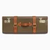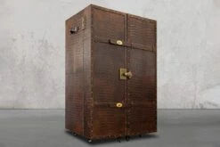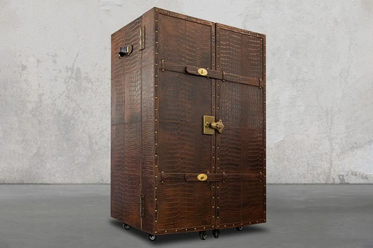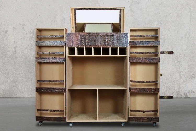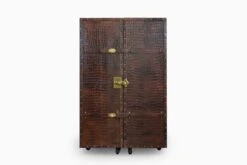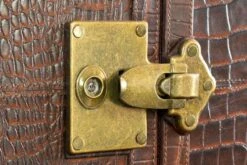 Genuine croc embossed leather, Genuine brown leather, Fine wood base, Suede fabric and antique hardware