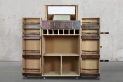 Create a truly luxurious at-home bar experience with this genuine leather bar cabinet, lined with suede fabric and featuring antique hardware for a heritage feel.