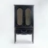 A modern mini bar unit made in genuine leather laminated on fine wood base with inside suede fabric and hand studded with antique studs. This mini bar keeps bar essentials in a compact size by accommodating up to 3 wine bottles with room for more inside the spacious cabinet.
