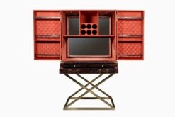 Create a truly luxurious at-home bar experience with this genuine leather bar cabinet, lined with suede fabric and featuring antique hardware for a heritage feel.