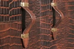 Genuine croc embossed leather, Genuine brown leather, Fine wood base, Suede fabric, LED Lights, SS Stand and antique hardware