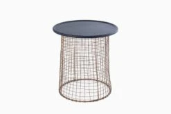 The striking Hestia End Table looks remarkable with its mixed material accent reflecting the rhythm of modern architectural construction. Hand-welded spokes of brass-finished iron wires shape the end table’s free flowing chequered base, topped with a stylish matte disc.