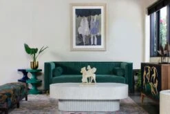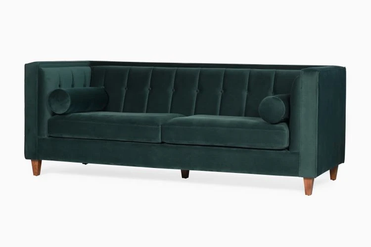 With its neat tailoring, gorgeous hue, and generous padding, this track-arm sofa is chic, versatile, and undeniably inviting. Handcrafted by master artisans, the Hudson Sofa spells Midcentury Modern in every sense – be it the sumptuous velvet upholstery, the contemporary silhouette, or the charming hue.