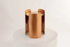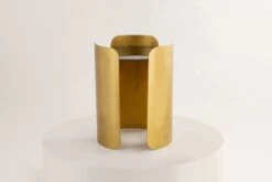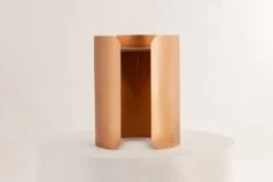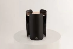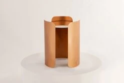 A circular top held tenderly by three curved sheets of metal – with no harsh corners in sight, it is a true embodiment of gentle affection and functional elegance.