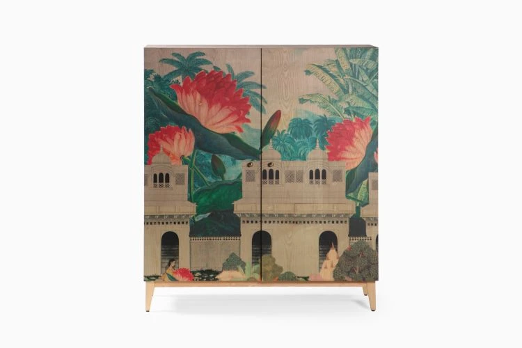 Capturing the maginificence of the Mewar kingdom and its beauty during the monsoon season, this art cabinet makes for a lush, artistic addition to your living spaces.