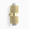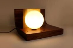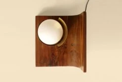 Indu, waxing and waning; goes from a table lamp to a night lamp, the moving brass shade modulating the mood.