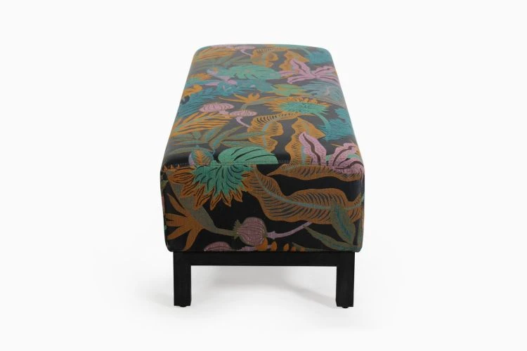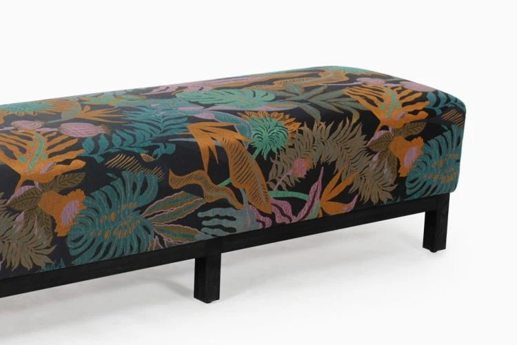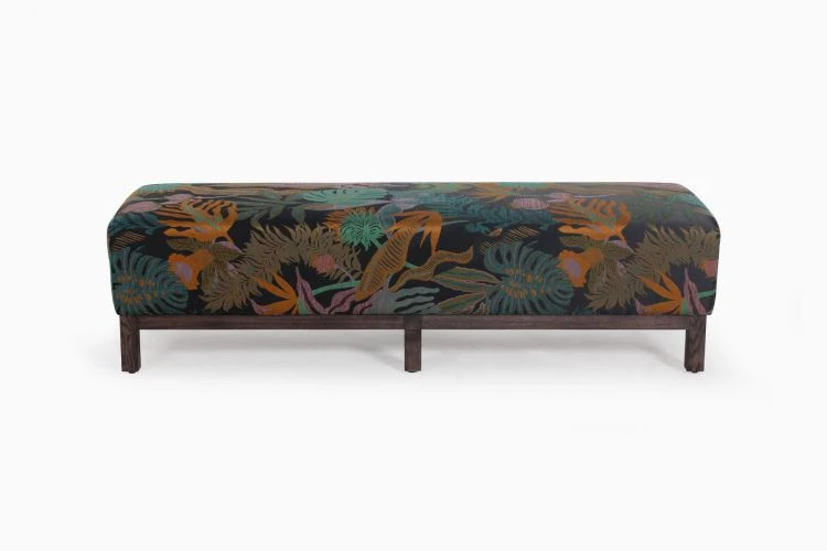 Soft and superbly styled with its tropical themed upholstery, this exceptional bench is an effortless combination of comfort and classical flair. Set on stately solid legs, this piece is refined with a bold colour palette.