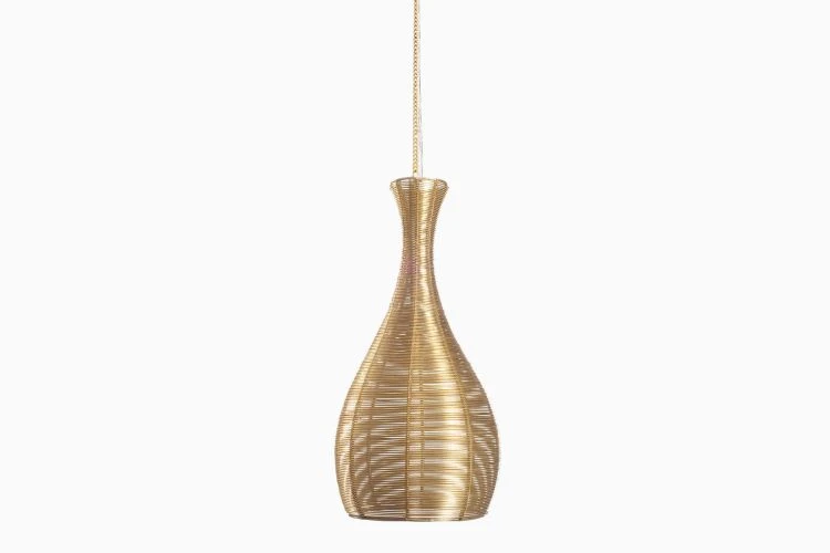 Named after “Kainoosh”, the stylish Delhi restaurant for which the lamps were designed, these lights are, as the name in Persian suggests, a cocoon of sophi tication. Transferring their skills with iron wire to brass, the Birdcage makers of Rajasthan continue to develop new alternatives for spreading light. The balmy rays of glowing gold, emitted through the lamps handmade in lacquered brass, create a gentle spectrum of light that projects a warm Indian welcome.