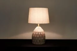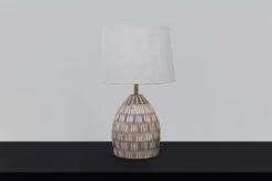 Bringing to mind the patterns found in African culture, the base of the Krola Table Lamp is characterized by a hand-carved mango wooden base. This table lamp is ideal for adding an organic flair to a bedroom, hallway, or living room.