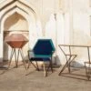 This piece of bamboo furniture is immensely strong and light weight, since the components have been triangulated, joints omitted, modelling a stable geometrical form.