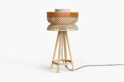 Structured with a robust bamboo based tripod base, the translucent top shade allows light to be softly diffused in the surrounding environ.
