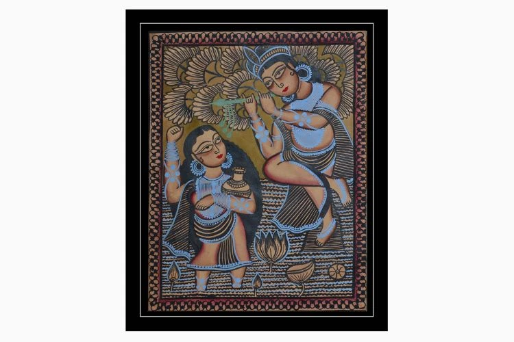 Madhav and Murari are both names of Lord Krishna, who is shown here as playing the flute for his loving cohort, Radha. It is said that even today, Radha and Krishna come to Nidhivan in the forest temple of Vrindavan every night to perform the divine dance in the form of Raas Leela.
