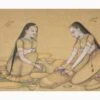 The lady is depicted against a serene backdrop, her focus dedicated to a sacred tulsi plant. With utmost care, she tenderly pours water from a pot, nourishing the plant’s roots and ensuring its well-being. The artist skillfully captures the lady’s peaceful expression, embodying her devotion and connection to the divine through this humble act.