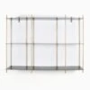 Genuine Leather, Fine wood base, suede fabric, metal stand & antique hardware.