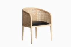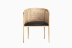 Inspired by traditional cane seating, this chair is a contemporary version of a much loved classic. The spoke-shaved frame is a solid ash, given smooth edges accentuated by the rich black polish or gentle natural ash finish. The leather adds an element of soft luxury to this earthy piece.