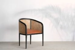Inspired by traditional cane seating, this chair is a contemporary version of a much loved classic. The spoke-shaved frame is a solid ash, given smooth edges accentuated by the rich black polish or gentle natural ash finish. The leather adds an element of soft luxury to this earthy piece.