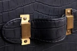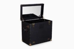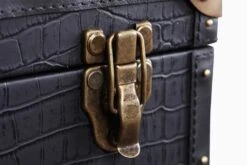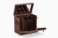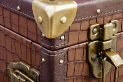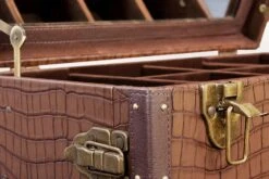 Genuine Leather, Suede fabric lining, Water-resistent MDF base and Antique brass metal hardware