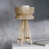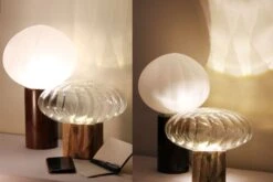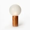 Combining teak wood and glass for visual intrigue, the Mireya Table Lamp brings a modern-meets-rustic aesthetic to any nightstand, side table or desk.