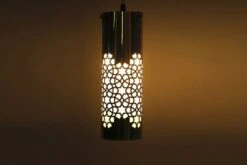 Inspired by Mughal architecture, this lamp has a worked-out geometric tessellation on the outside, achieved by a process known as etching.
