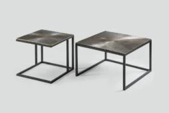 A study in simplicity and light of weight, this set of coffee tables is crafted and contoured for maximum impact and finish. Modelled from powder coated iron, this set features an aluminium top for easy durability and longevity. A perfect fit for modern interiors.