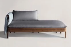 The concept of the Sukhasana position (cross-legged) was the inspiration behind the Paffe sofa. Its signature removable quilts, which serve as soft armrests can be removed and laid out on the floor as additional seats; a playful appearance that resonates with the designer’s own exploratory nature.