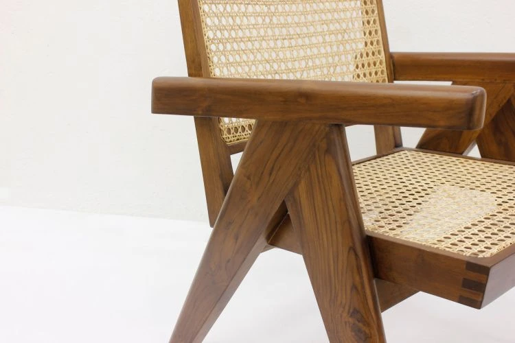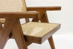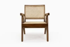 This chair is a fantastic rendition of iconic mid century design – inspired by Swiss architect Pierre Jeanneret’s most loved style. With its warm use of natural teak and cane, the piece showcases a modern aesthetic vocabulary that places form and function over embellishment.