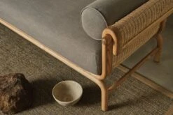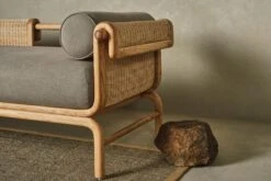 The Rahi Daybed is designed with versatility and comfort in mind, inviting you to lay in its restful arms. Its structure preserves the essence of an Indian diwan, within its modern framework.