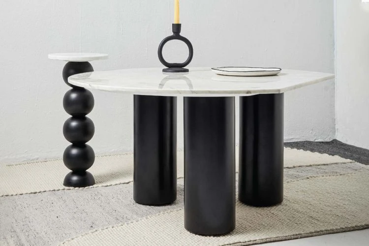 With a white marble top and a black wooden base, the Semi Coffee Table is a versatile unit. It’s monotone appeal makes it a perfect fit for any interiors.