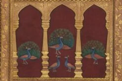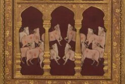 Poetic allusions to the ‘gopi’ or young maiden were extremely popular in the Pichwai art of the 19th century. This pichwai showcases 4 gopis in adulation of Lord Krishna in a beautiful geometrical composition.
