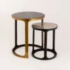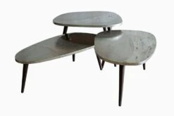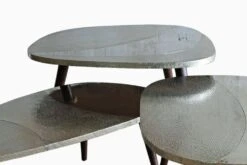 Crafting a unique silhouette, these side tables offer a perfect complement to a modern space. Three pebble-shaped tabletops join together to create a layered design, with slender, tapered legs that provide an elegant finish. Stand beside a grand contemporary sofa for an impressive display. Sold individually. Available in gold and silver finishes.